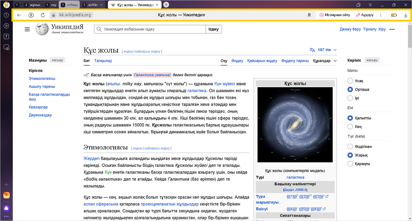 Яндекстің (www.yandex.kz) басты бетіне өту. Баптауларда өшіріледі.
