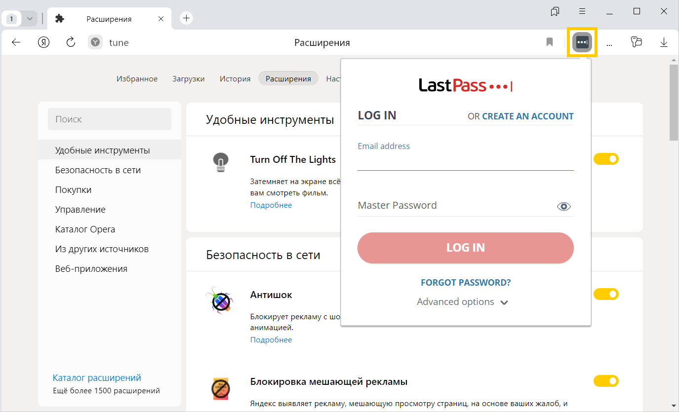 Расширения — это встроенные в браузер мини-программы, которые добавляют новые возможности, например блокируют неприятную рекламу, включают ночной режим или управляют паролями. В Яндекс Браузере можно устанавливать расширения, созданные командой Браузера, или из внешних каталогов: браузера Chrome или браузера Opera.