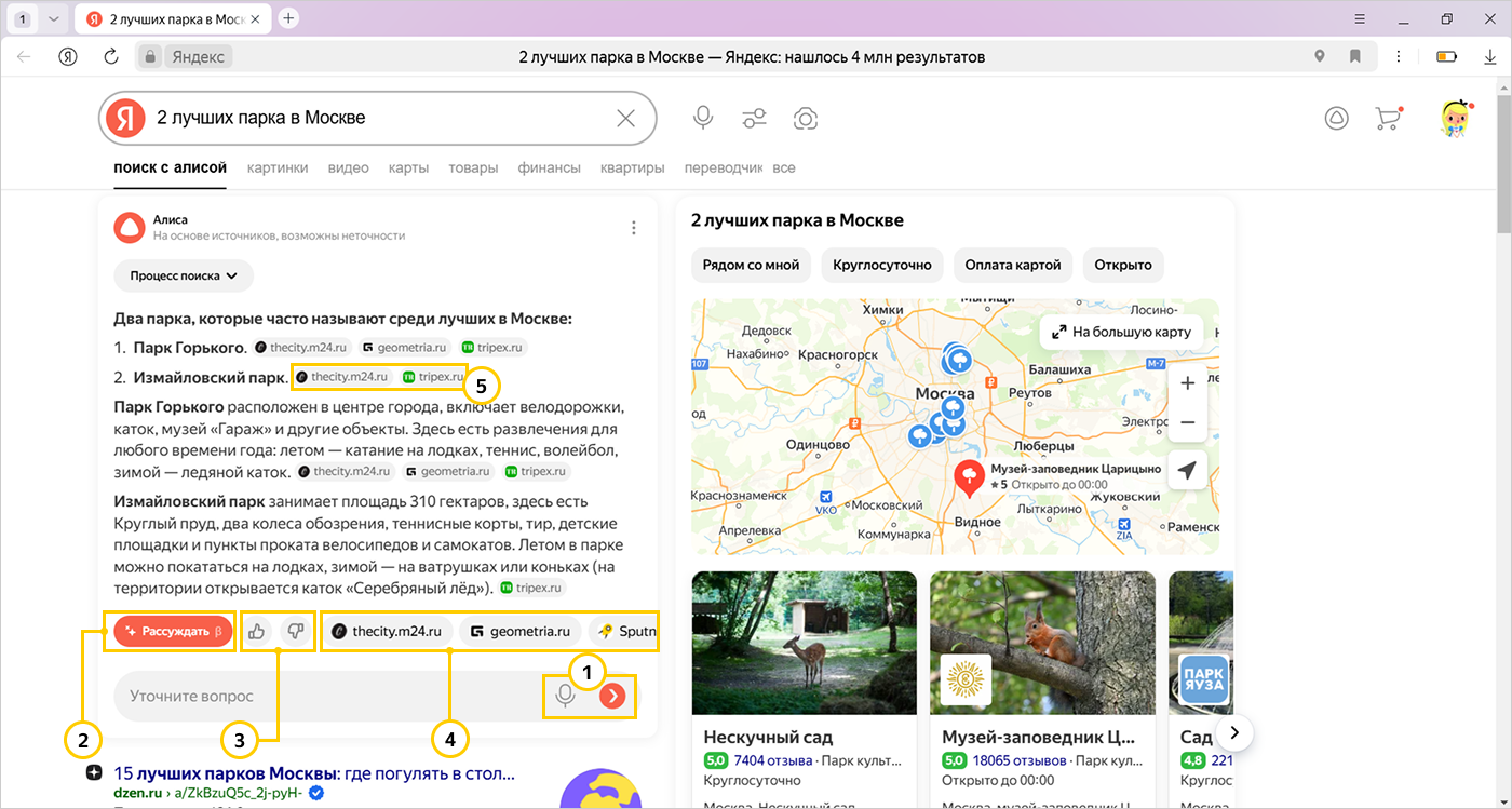 Поиск с Алисой дает ответы на сложные вопросы пользователей. Нейросети формируют структурированные, подробные и подтвержденные источниками ответы с иллюстрациями и видео.