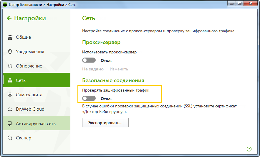 Отключение проверки HTTPS-соединений для антивируса Dr.Web