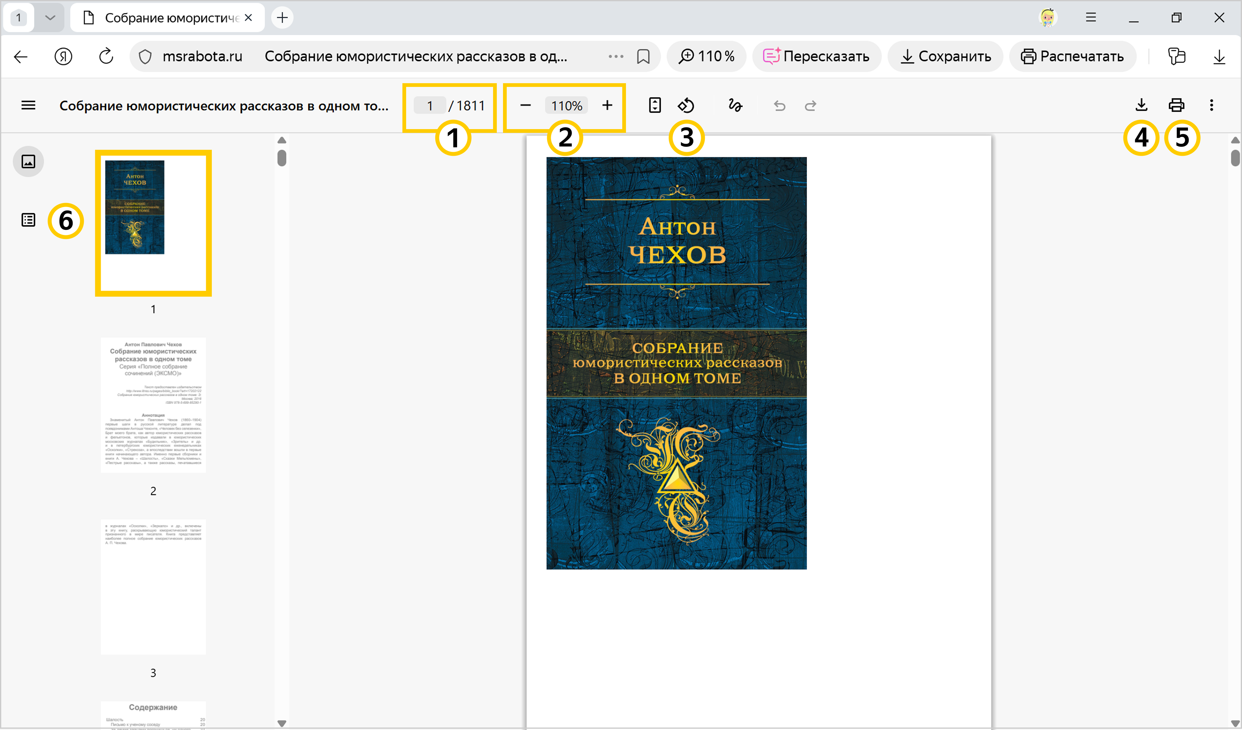 Найденные в интернете файлы можно просматривать прямо в Яндекс Браузере. По умолчанию сразу после скачивания файлы поддерживаемых форматов открываются в Браузере. Если владелец сайта запретил автоматически открывать файлы, файл сохраняется на компьютере. Вы можете вручную открыть его в Браузере. При просмотре файлов можно управлять их отображением в окне Браузера и делать закладки в электронных книгах.