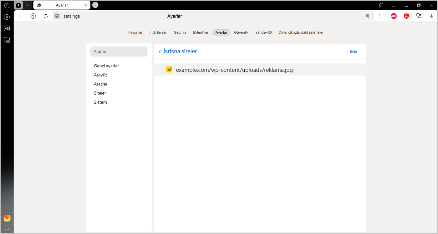 Sitedeki belirli bir reklamın engellenmesini istemiyorsanız o reklamı beyaz listeye ekleyin:
