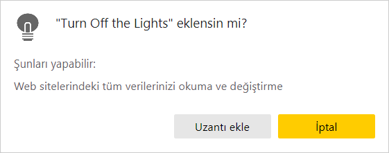 - <geçerli site>: açık. Eklenti geçerli sitenin verilerine erişebilecektir. Eklentinin erişebileceği sitelerin listesini