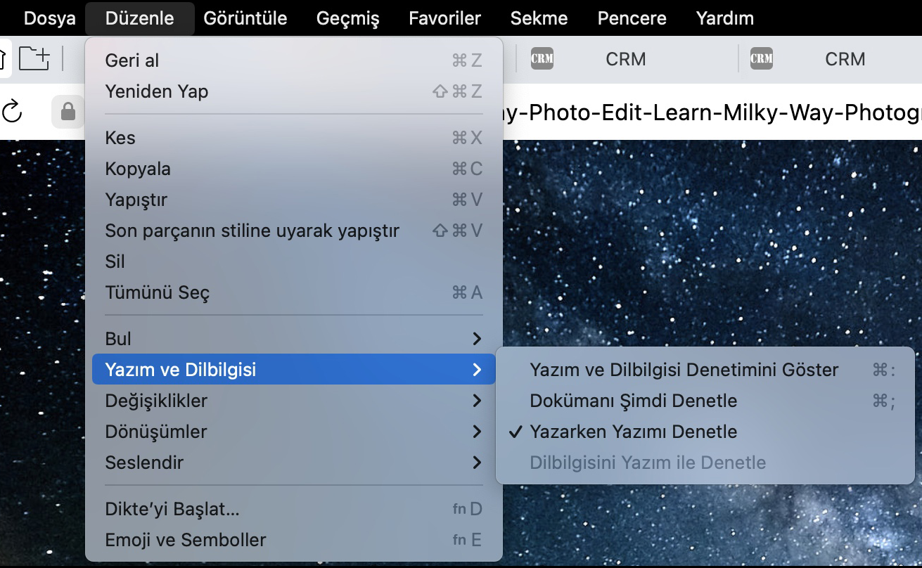 macOS için Yandex Browser’da sistemin yazım denetimi kullanılır.