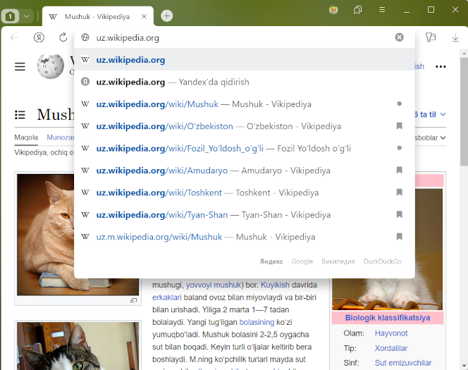 Aqlli satrga so‘rov, manzil yoki sayt nomini kiriting.