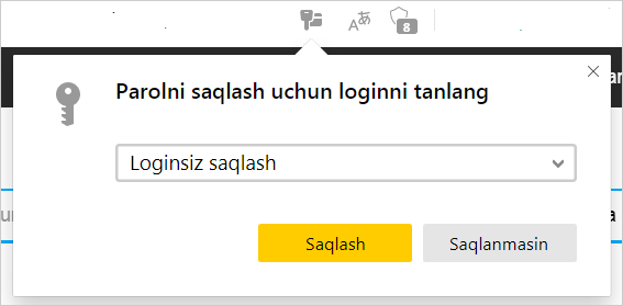 Agar parolni loginsiz kiritayotgan bo‘lsangiz, Brauzer oldinroq saqlanganlardan tanlashni taklif qiladi.