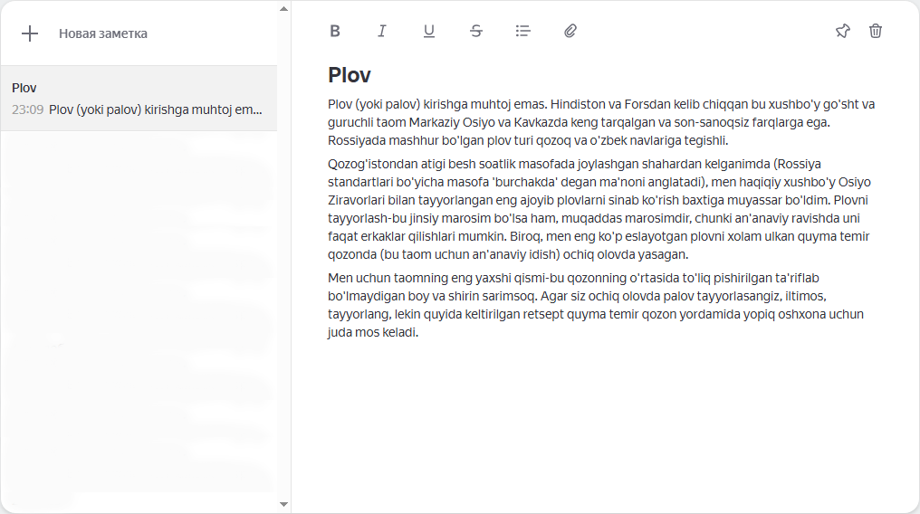 Yandeks Qaydlar — bu fikrlar, foydali havolalar, ishlar va xaridlar roʻyxatlari va boshqa muhim ma’lumotlarni bir joyda saqlaydigan veb-ilova.
